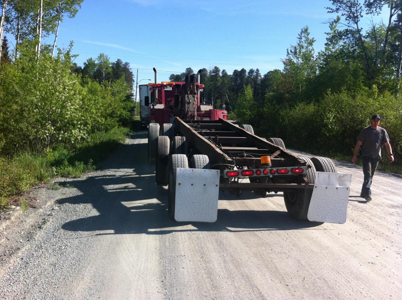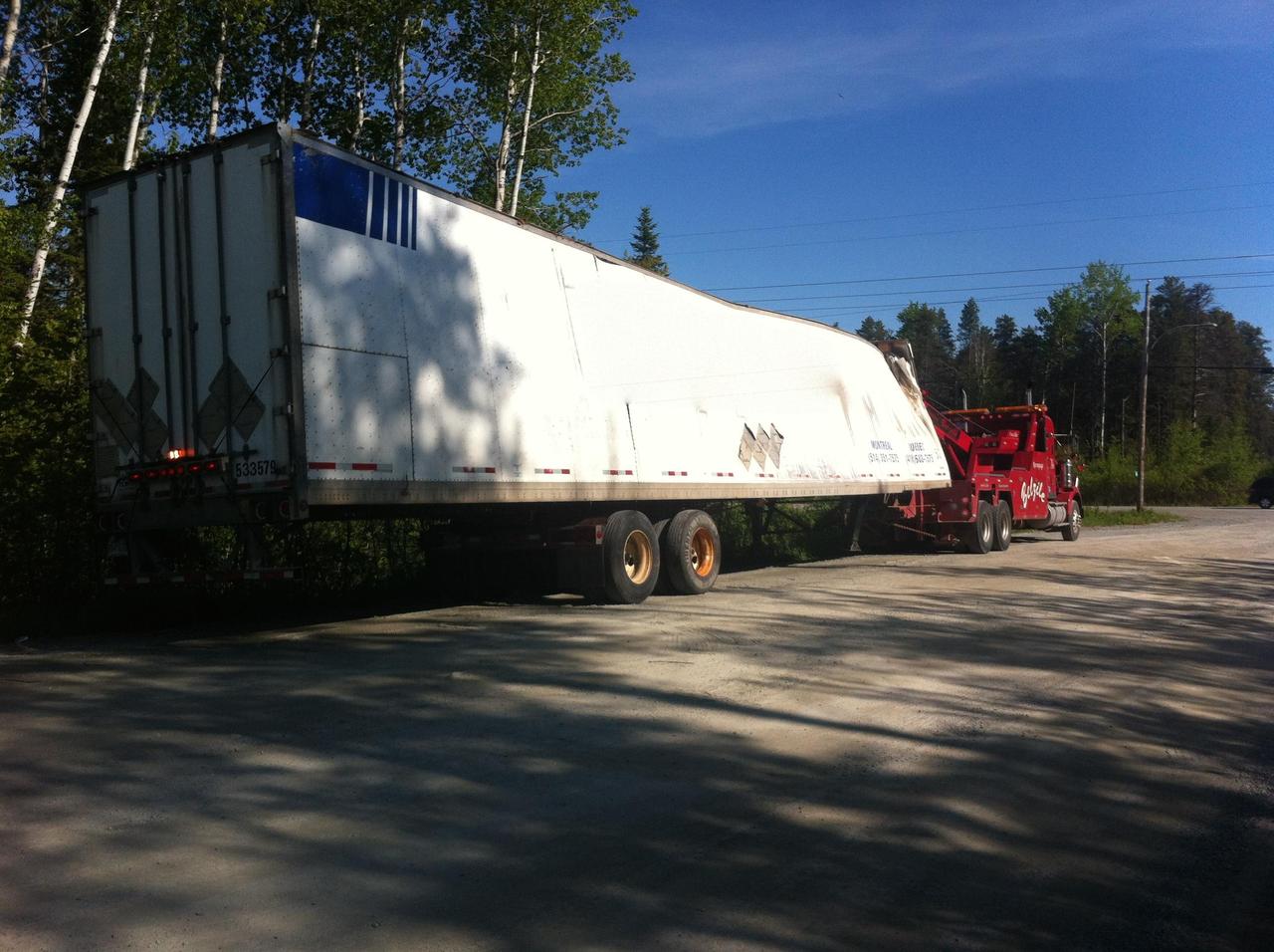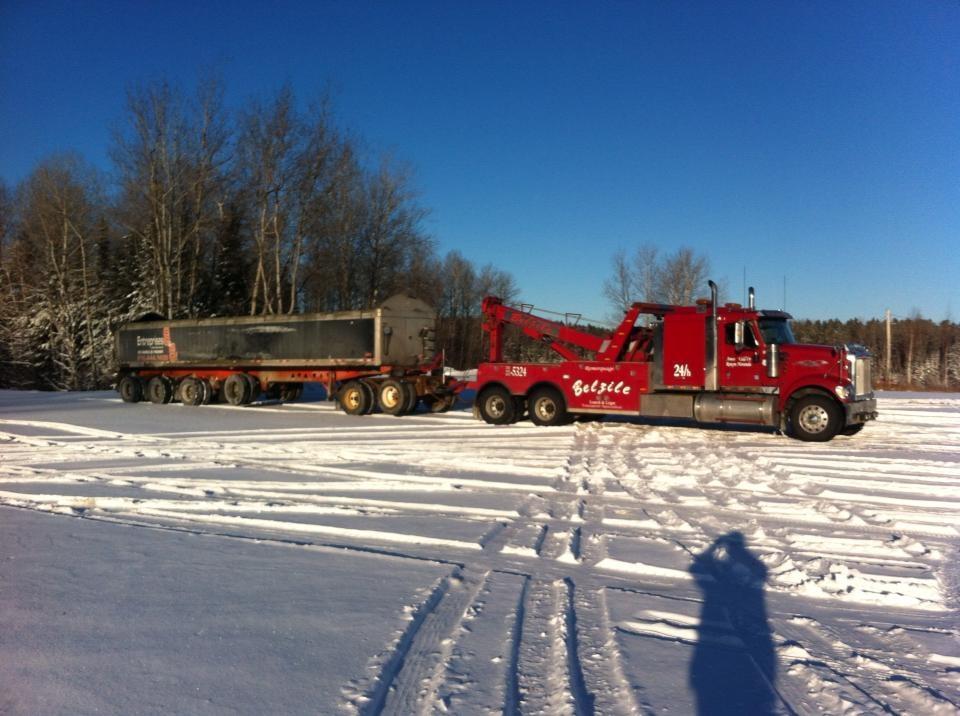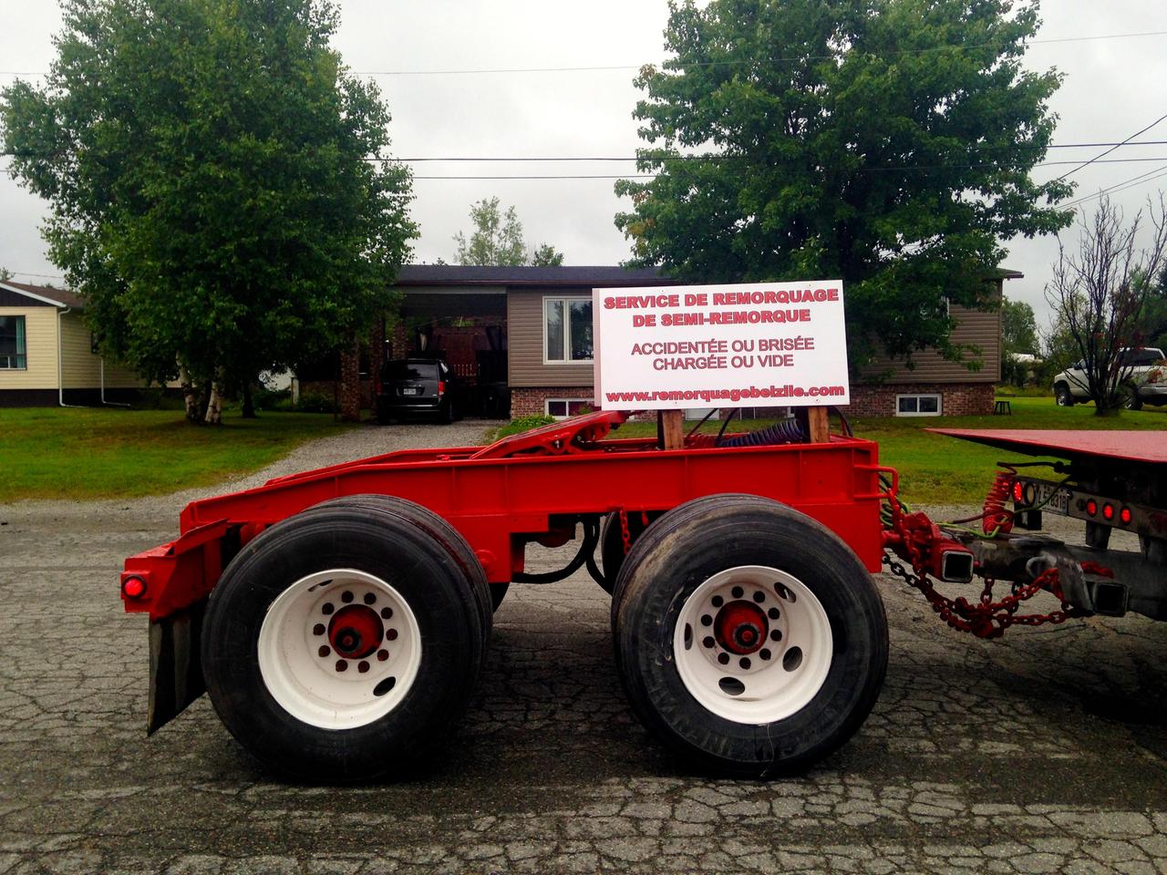 Cette équipements nous permet de remorqué toute sortes de charge. Nous possédons un diabolo permetant de remorquer des remorques chargées, habituellement impossible à remorquer avec un équipement de remorquage conventionnel. De plus, il nous est aussi possible d'utiliser ce diabolo pour remplacer les roues d'une remorque endomagée suite à un accident, de sorte à le rendre remorquable sécuritairement sur la route.